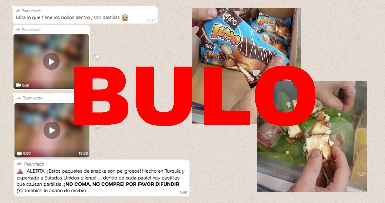 Se ha vuelto a hacerse viral un mensaje que alerta sobre bollería y "paquetes de merienda" que llevan dentro pastillas "que causan parálisis". La cadena va acompañada de un vídeo en el que se puede observar a una persona que abre un paquete de un pastel, lo desmenuza y extrae, supuestamente, las peligrosas pastillas. Sin embargo, la Agencia Española de Seguridad Alimentaria y Nutrición, AESAN, no tiene conocimiento de ninguna alerta sobre estos productos.