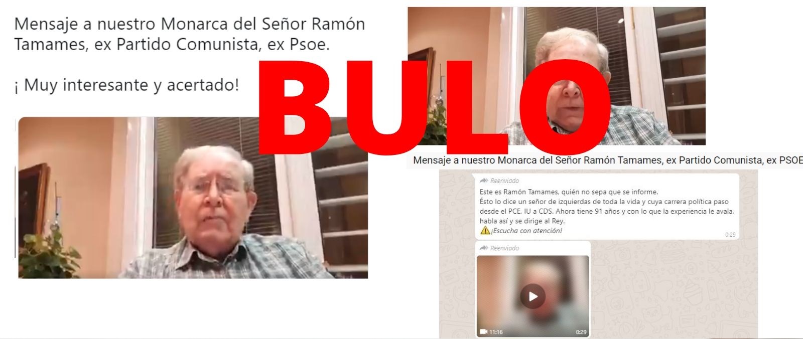 Nos habéis preguntado mucho por nuestro servicio de WhatsApp (655 19 85 38) por un vídeo de unos 11 minutos de duración dirigido al rey de España en el que critica al entonces presidente del Gobierno en funciones Pedro Sánchez. En el vídeo se pide al rey que "cumpla con su obligación" y "recuerde que es jefe de la Fuerzas Armadas". Según el texto junto con el que se mueve, la persona del vídeo se trata de Ramón Tamames, "un señor de izquierdas de toda la vida y cuya carrera política paso desde el PCE, IU a CDS". Es un bulo: se trata de Gil de la Pisa Antolín, ex secretario general de Fuerza Nueva.