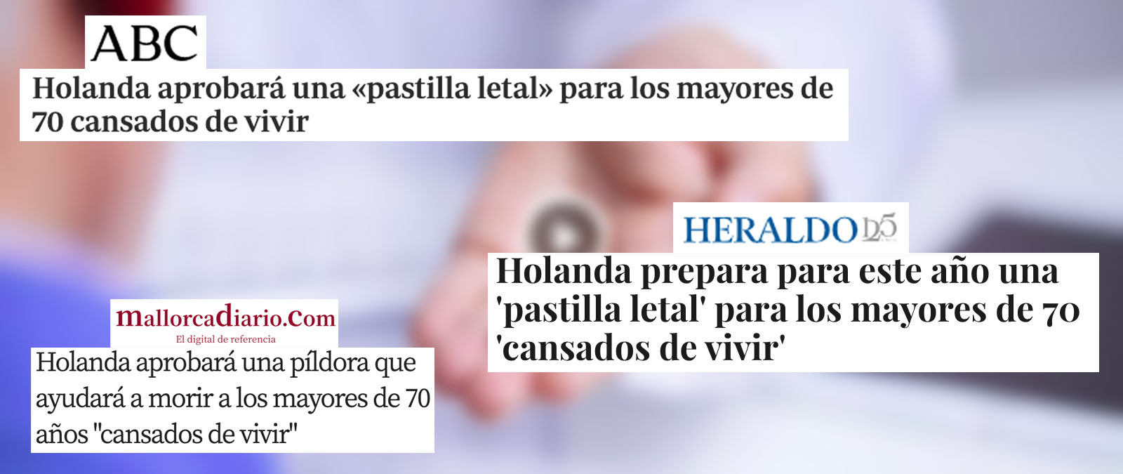 Varios medios como ABC, el Heraldo de Aragón o Mallorca Diario han publicado que el Gobierno de Países Bajos va a aprobar una ley con la que "los mayores de 70 cansados de vivir" podrán someterse a la eutanasia mediante una "pastilla letal" aunque no presenten ningún problema de salud. La realidad es que se trata de una iniciativa planteada por un sólo partido del Gobierno que ni ha sido presentada ni debatida ni apoyada por el Ejecutivo en su conjunto.