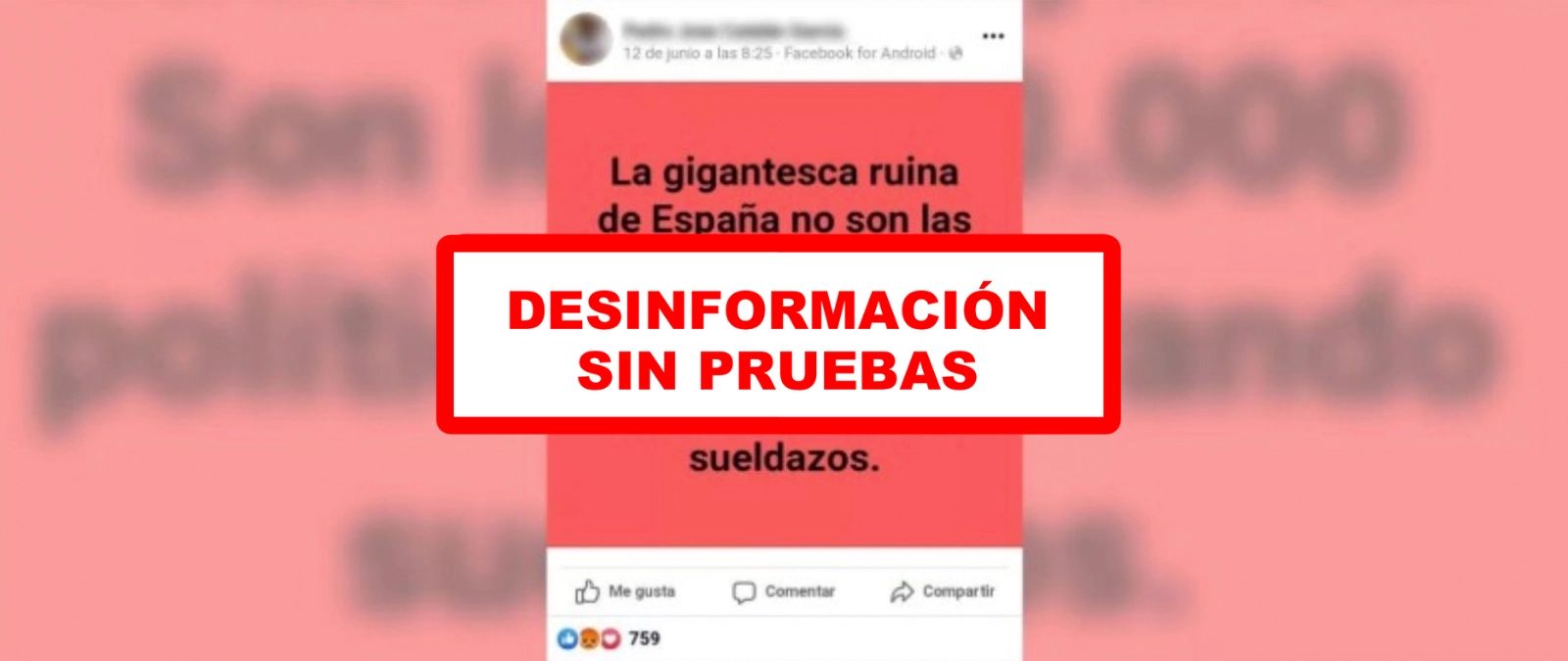 Está volviendo a ciruclar en redes sociales una cadena en forma de imagen que dice que “la gigantesca ruina de España no son las pensiones de nuestros mayores. Son los 470.000 políticos cobrando sueldazos.”