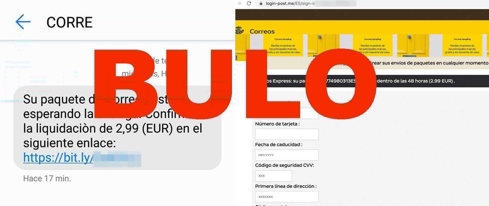 Nos habéis estado preguntando por un mensaje SMS que dice "su paquete de Correos està esperando la entrega. Confirma la liquidación de 2,99(eur) en el siguiente enlace" y va acompañado de un link a una página web que utiliza el logo de Correos y en la que te piden tus datos bancarios.