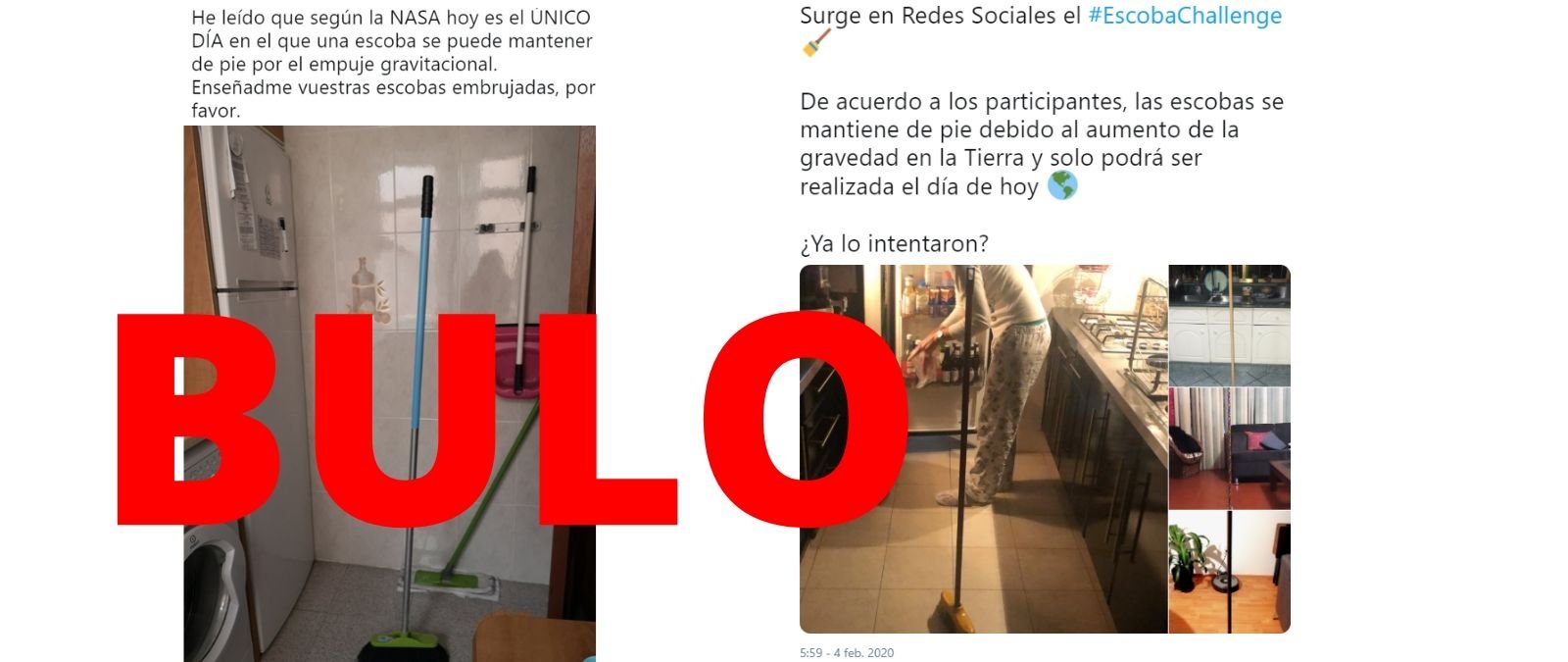 Circula desde hace días un reto viral llamado #EscobaChallenge consistente en dejar de pie una escoba sin que se apoye en nada y que no se caiga. Según varios contenidos virales, la NASA dijo que sólo se puede hacer "hoy" por un "aumento de la gravedad". Es un bulo que la NASA haya dicho que sólo se pueda hacer un día por un aumento de la gravedad: se puede hacer cualquier día.