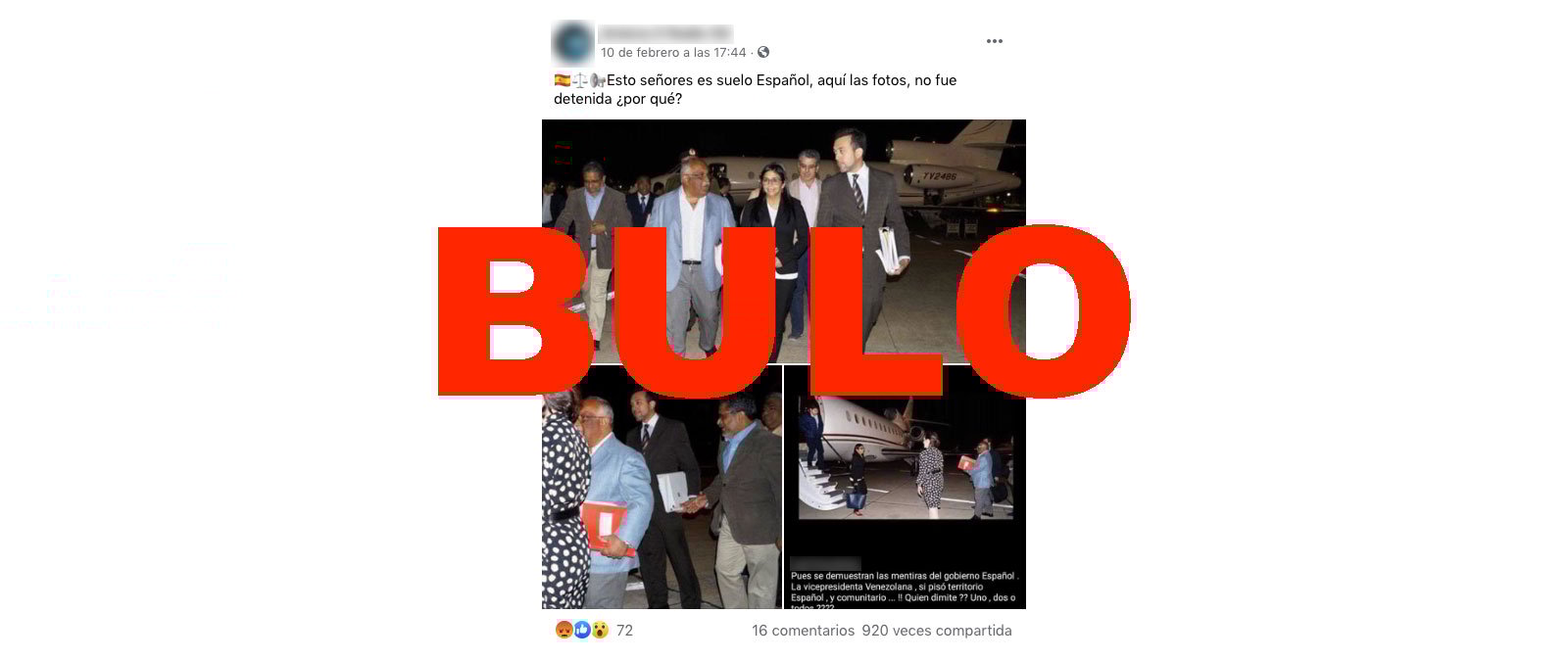 Coincidiendo con la polémica surgida por el encuentro entre el ministro de Transportes, Movilidad y Agenda Urbana, José Luis Ábalos, y la vicepresidenta de Venezuela, Delcy Rodríguez, en el aeropuerto de Barajas (Madrid), han estado circulando varias imágenes de la mandataria venezolana pisando supuestamente "suelo español". Sin embargo, las fotos fueron tomadas en Argentina en 2016. Ni son en España ni son actuales.