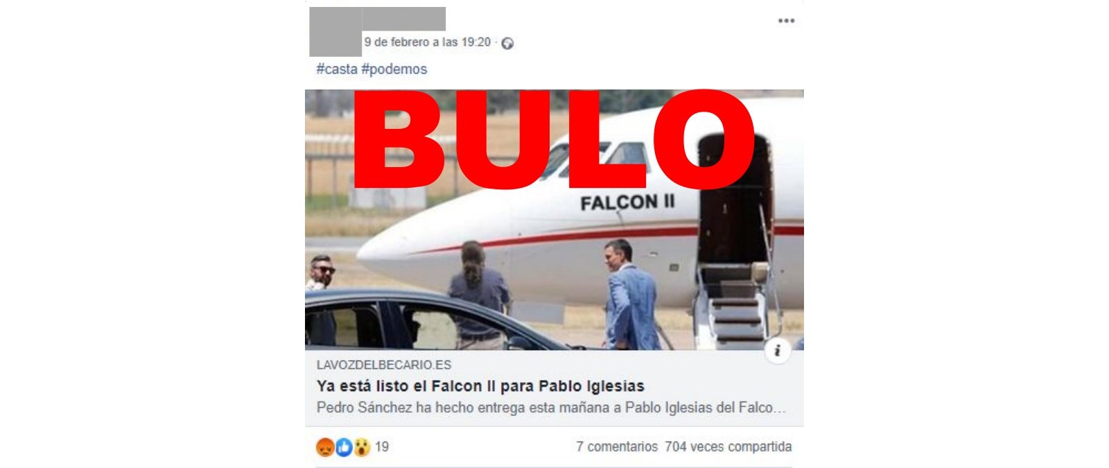 Un contenido publicado por la web La Voz del Becario afirma que "ya está listo el Falcon II para Pablo Iglesias" que supuestamente le ha entregado Pedro Sánchez para que "el vicepresidente pueda desplazarse convenientemente y no depender del presidente". Es un bulo: es un contenido satírico que se está viralizando como real convirtiéndose así en desinformación.