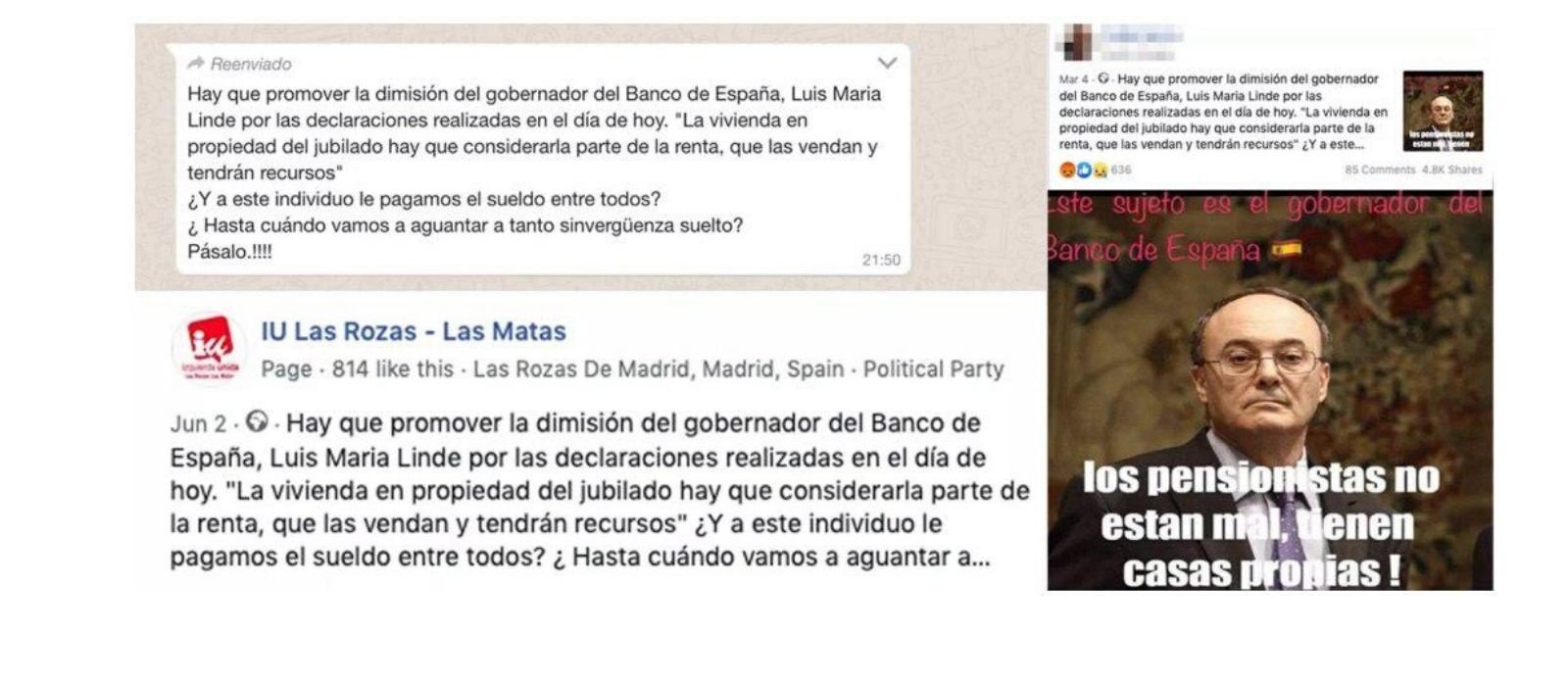 En este caso nos encontramos ante un caso de desinformación atípica, ya que aunque tiene un motivo aparente detrás, como es la dimisión de Luis María Linde, este objetivo no tiene sentido puesto que ya no ocupa el cargo que se pide que abandone. Os contamos lo que sabemos sobre las declaraciones que se le atribuyen en este mensaje.