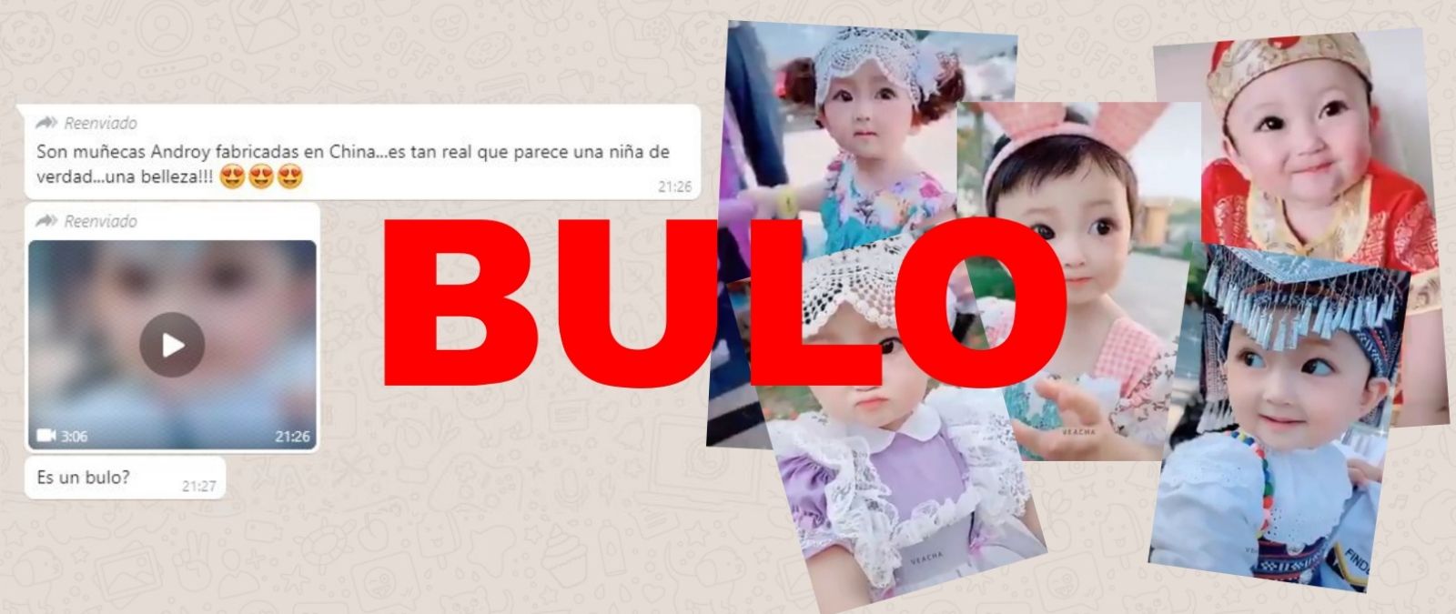 Nos habéis consultado a través de nuestro servicio de WhatsApp por un vídeo en el que, supuestamente, aparecen "muñecas androide fabricadas en China", según el mensaje que le acompaña. Es un bulo que hemos encontrado en otras redes sociales y en otros idiomas, como inglés, árabe, portugués o vietnamita.