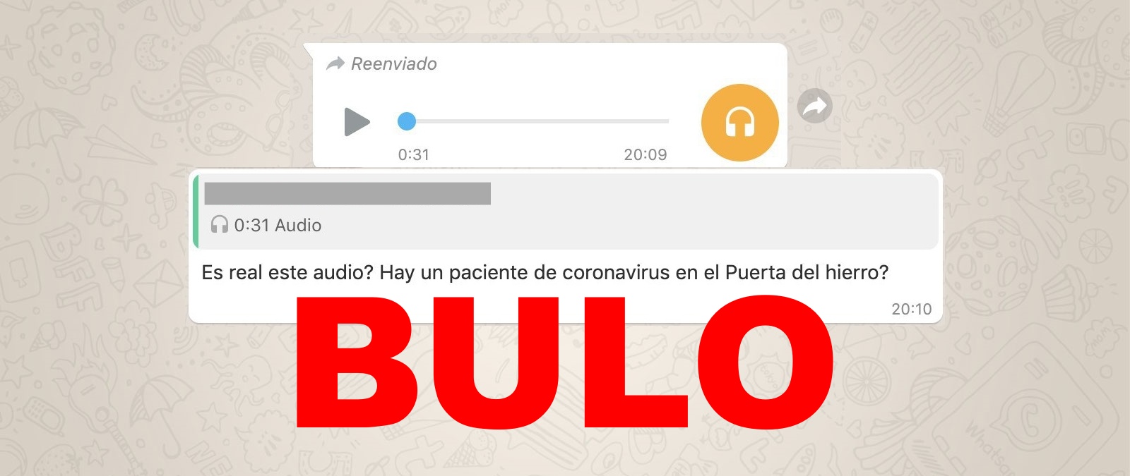 "(...) Jose tiene un paciente que es médico del Puerta de Hierro. Acaba de tratar al primer paciente de coronavirus en Madrid. Van a aislar el hospital y (...) le ha dicho: 'avisa a tu gente que para que no traigan a Puerta de Hierro pues a niños y gente mayor, etc.'. Se comunicará en breve. Os lo digo porque si tenéis a alguien malito o lo que sea, que no os vayáis a Puerta de Hierro."