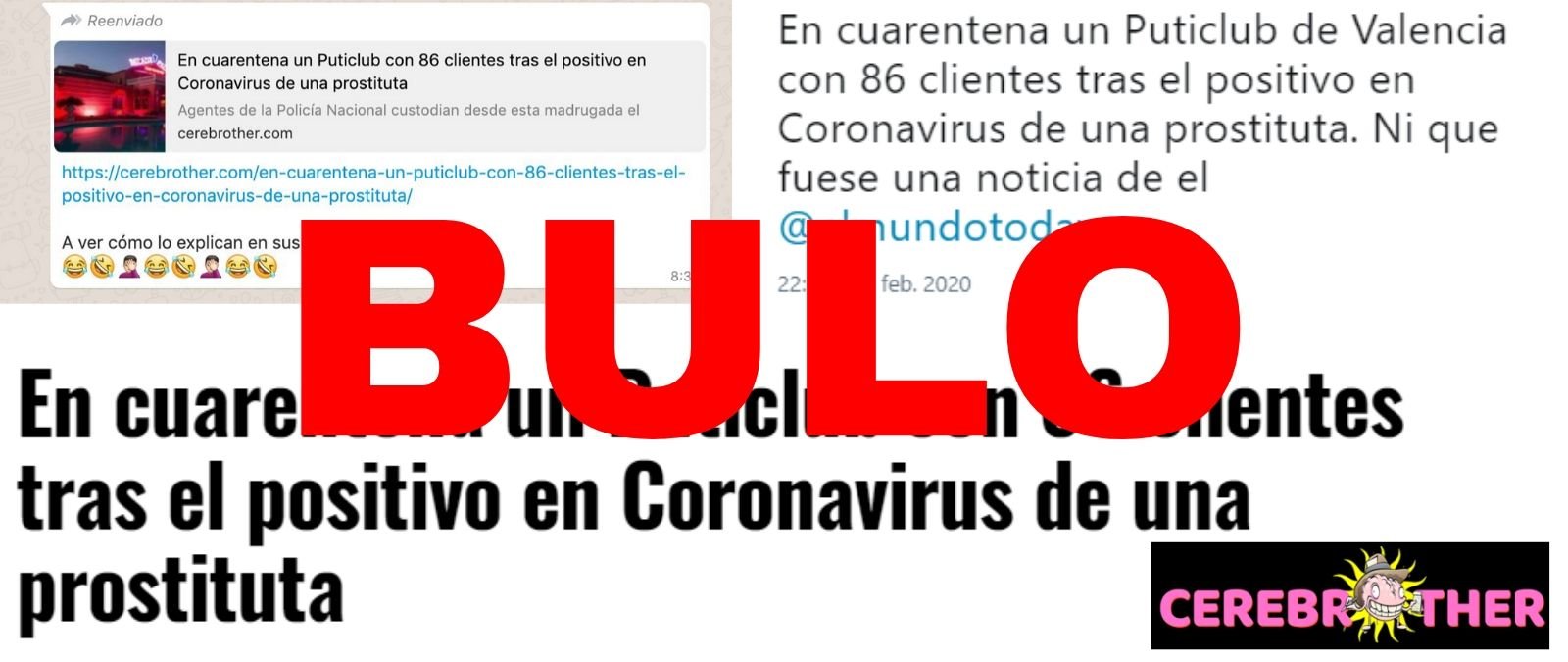 El bulo del puticlub y el coronavirus no cesa. Circula un contenido titulado 'En cuarentena un Puticlub con 86 clientes tras el positivo en Coronavirus de una prostituta' en Valencia como si lo sucedido en ese burdel fuese real. Es un bulo. Os lo explicamos.