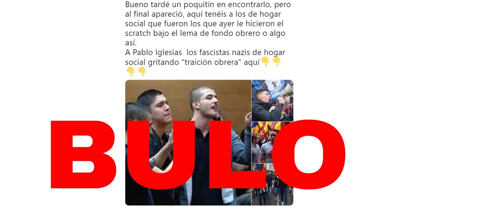 El 4 de marzo Pablo Iglesias, vicepresidente segundo del Gobierno de España, participó en un acto titulado 'Reaccionarismo y fascismo en el siglo XXI' con Álvaro García Linera, exvicepresidente de Bolivia, y Esther del Campo, decana de la Facultad de Ciencias Políticas y Sociología de la Universidad Complutense de Madrid. Durante el turno de Pablo Iglesias, el vicepresidente fue interrumpido por un grupo de jóvenes que, en redes sociales, se ha dicho que son de Hogar Social Madrid. Es un bulo.
