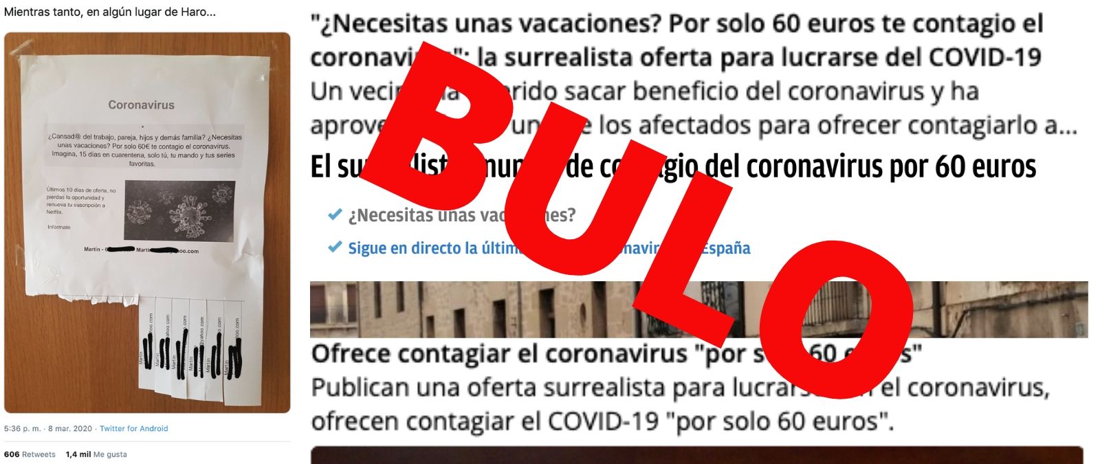 No, el cartel que afirma contagiar de coronavirus a cambio de 60€ no es un anuncio real: es una broma que varios medios y webs han publicado como real