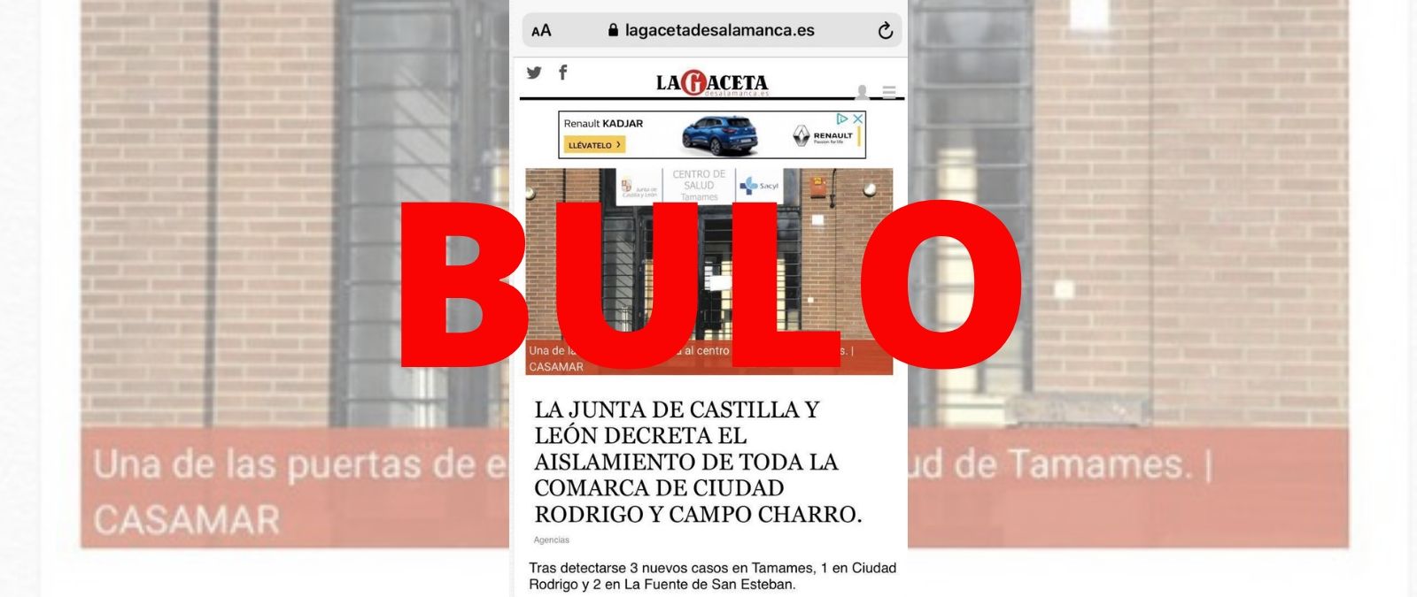 Esta captura que se está difundiendo haciéndose por un artículo de La Gaceta de Salamanca en realidad es un montaje. Ese medio ha afirmado en un artículo en el que afirman que "LA GACETA no ha publicado en ningún momento esta información y se trata de un montaje para provocar alarma".
