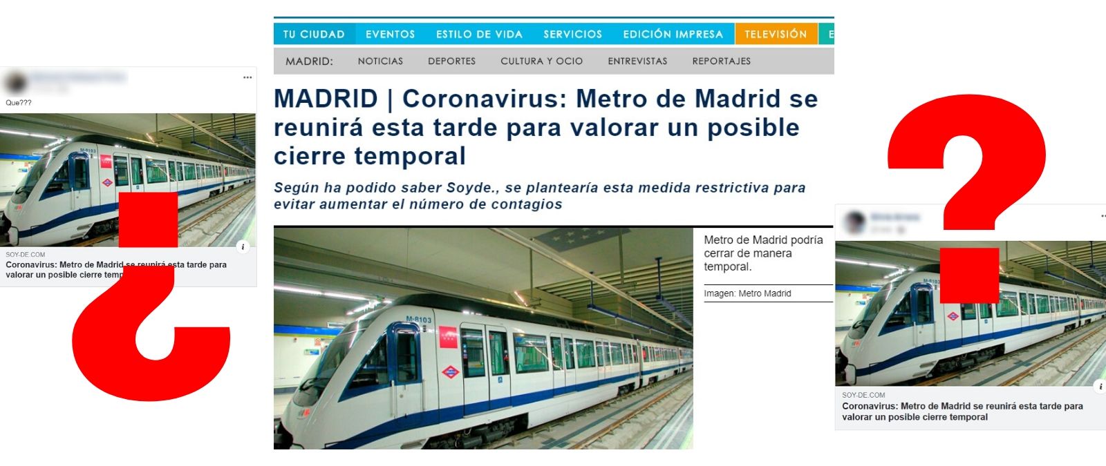 Se está compartiendo en redes sociales un contenido del portal Soy de Madrid publicado el 11 de marzo y que se titula "Metro de Madrid se reunirá esta tarde para valorar un posible cierre temporal". Una supuesta "medida restrictiva" que, según esta web, "se plantearía para evitar aumentar el número de contagios" por el coronavirus. Sin embargo, Metro de Madrid dice que el contenido "es falso" y niega que la reunión se haya producido. Os contamos lo que sabemos.