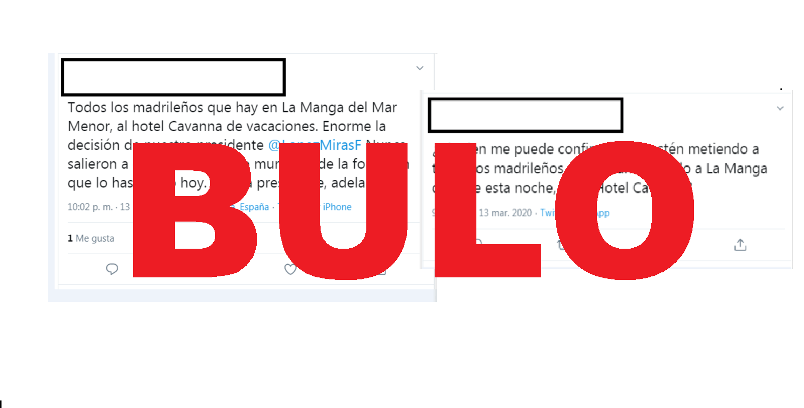 Nos habéis preguntado por un audio que se mueve por WhatsApp en el que un hombre avisa de que "ya no se puede salir ni entrar de la Manga (Murcia)" porque "hay 600 madrileños a los que han metido en el hotel Cavanna", dejándoles incomunicados a causa del coronavirus. Sin embargo, la información que proporciona no es cierta: se trata de un bulo.