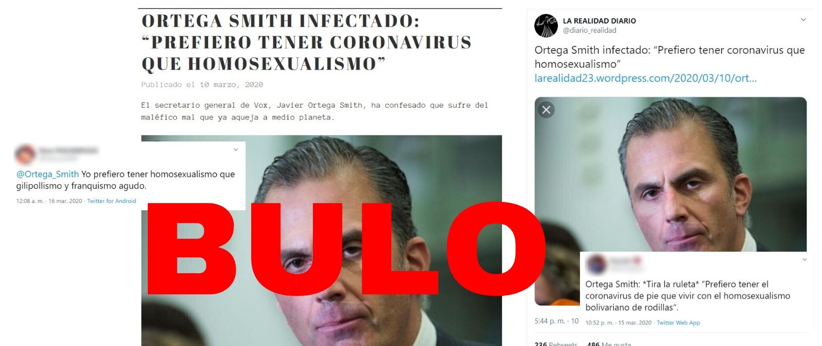 Se está compartiendo como real un contenido del blog larealidad23.wordpress.com publicado el 10 de marzo y que se titula "Ortega Smith infectado: 'prefiero tener coronavirus que homosexualismo'. Es un bulo.