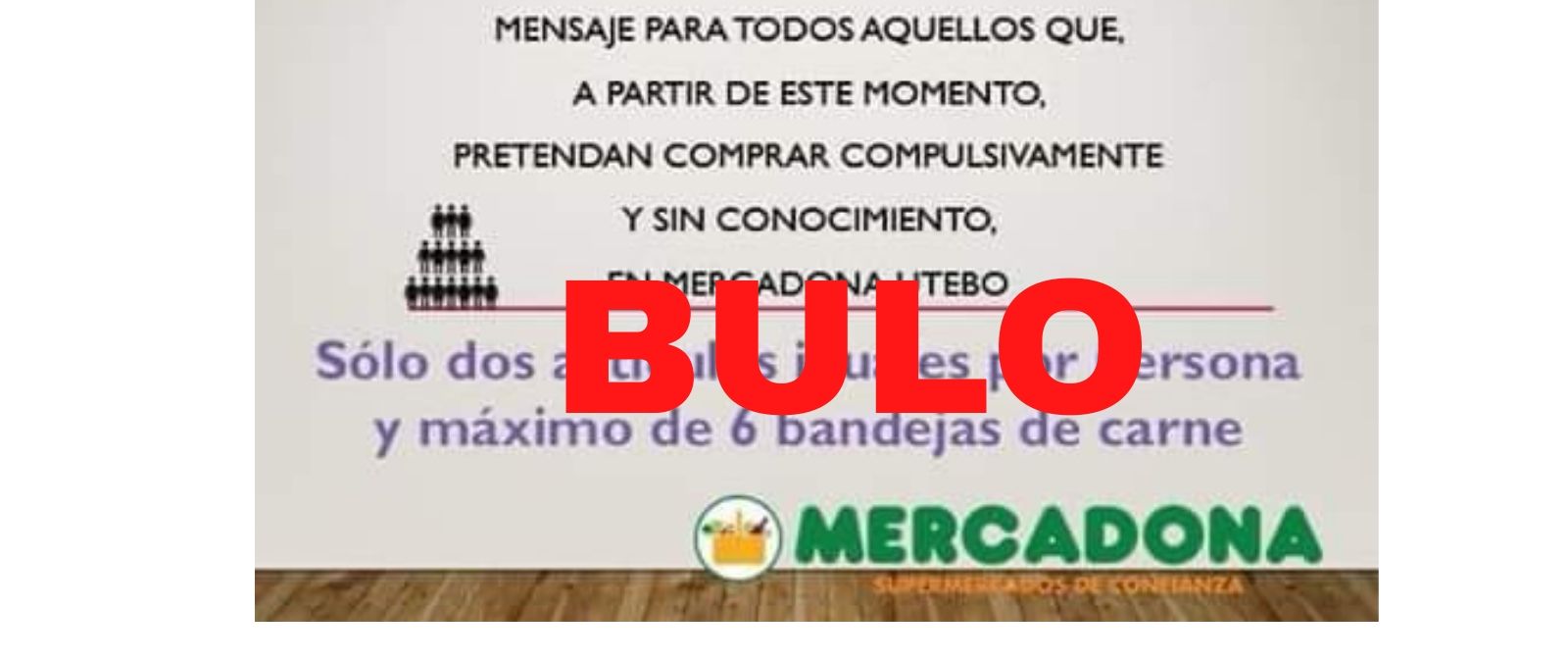 Desde Mercadona aseguran a Maldita.es que ese mensaje es “falso” y que "las únicas medidas aprobadas son las indicadas". En ninguna de ellas, reflejadas en una nota de prensa, aparece que se vaya a limitar la compra a solo dos artículos iguales por persona y máximo 6 bandejas de carne. Entre las medidas, en cambio, piden a los clientes no almacenar innecesariamente productos ya que "el suministro de productos de primera necesidad está más que garantizado" y espaciar la compra a lo largo del día .