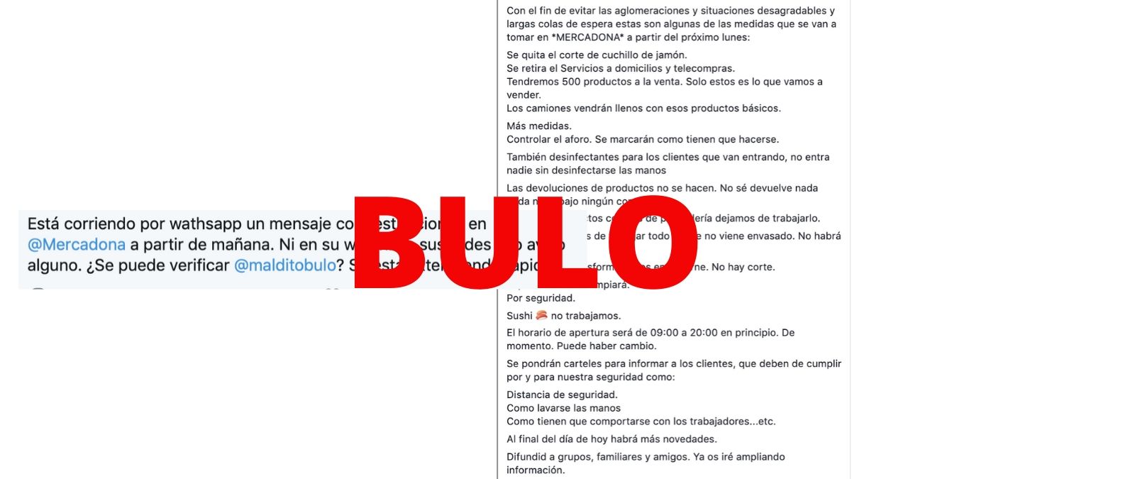 Es un bulo: desde Mercadona aseguran a Maldita.es que ese mensaje es “falso” .
