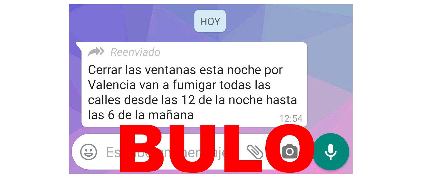 Nos habéis enviado un aviso para que los vecinos de Valencia cierren sus ventanas hoy porque "se van a fumigar todas calles desde las 12 de la noche hasta las 6 de la mañana". Es un bulo, no hay ninguna recomendación oficial al respecto ni se van a "fumigar" las calles. El Ayuntamiento de Valencia va a baldear las calles con agua con desinfectante y la Unidad Militar de Emergencias (UME) está desinfectando puntos estratégicos de la ciudad. Os lo explicamos.