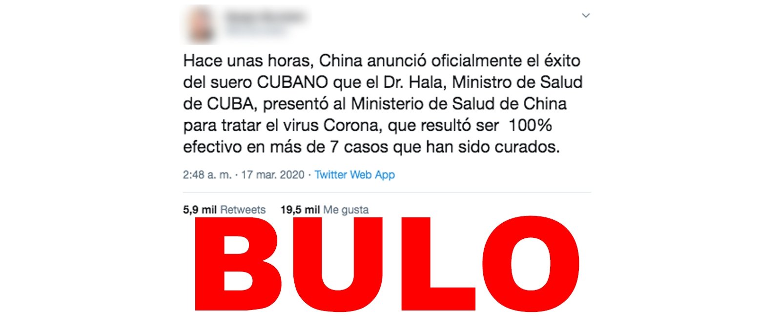 Un mensaje que se ha viralizado en redes sociales dice que "China anunció oficialmente el éxito del suero cubano que el Dr. Hala, Ministro de Salud de Cuba, presentó al Ministerio de Salud de China". Es un bulo que ya se había difundido antes, donde en lugar de señalar Cuba, se menciona al Dr. Hala, ministro de salud de Egipto en el texto.