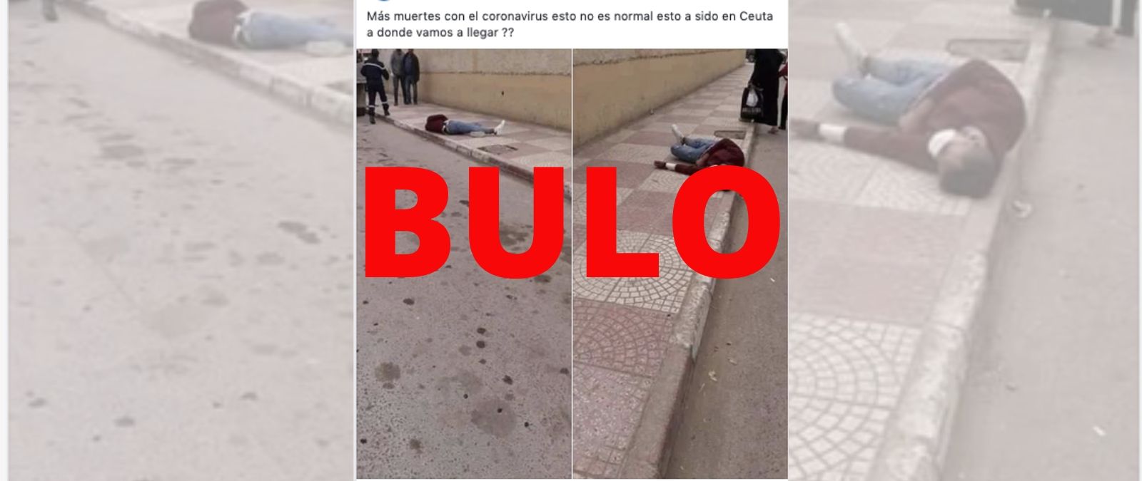 Desde este 16 de marzo están circulando por redes sociales unas imágenes de un hombre con mascarilla tirado en el suelo con el mensaje "más muertes con el coronavirus esto no es normal esto ha sido en Ceuta". Es un bulo: hasta el 17 de marzo no se había registrado ninguna muerte en Ceuta por coronavirus y las fotos no están tomadas en Ceuta, sino en Argelia.