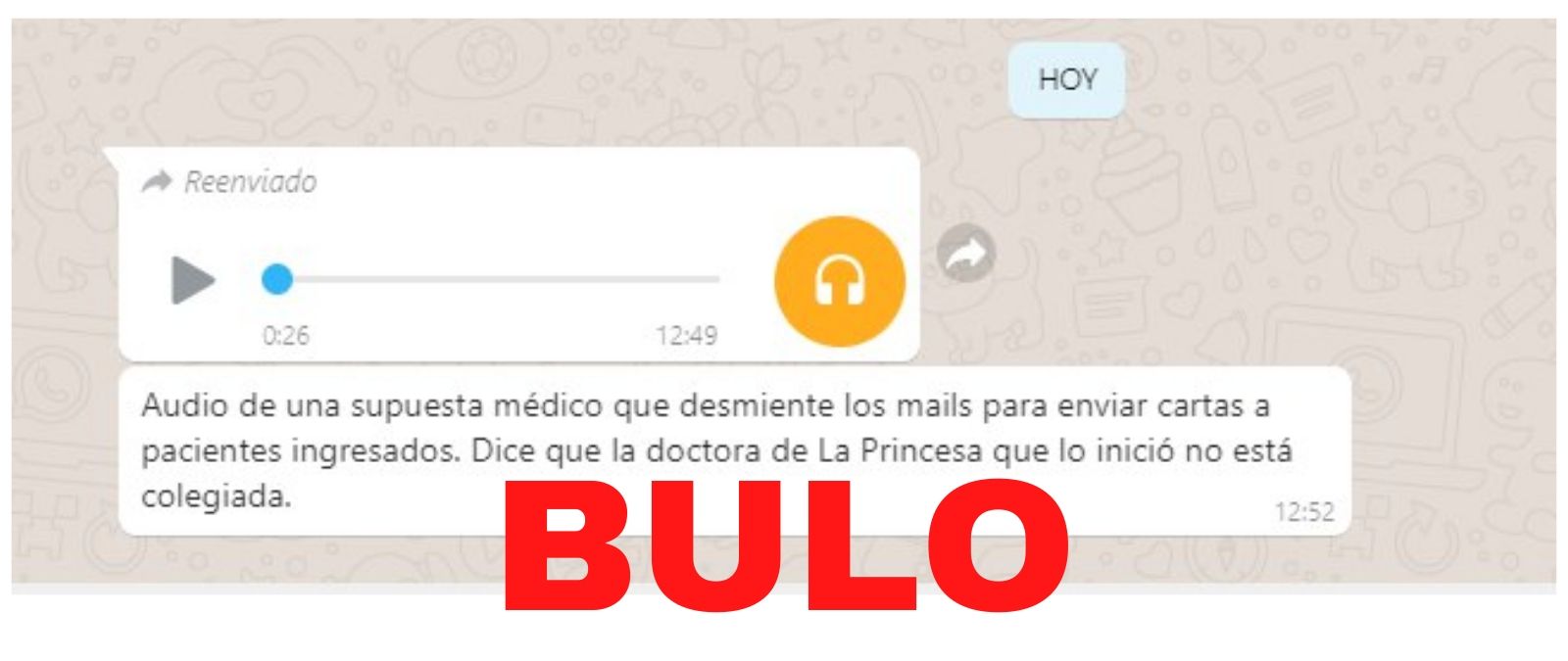 En el audio que se difunde ahora se afirma que esta iniciativa busca "coger correos electrónicos de la gente". La médica ha explicado a Maldita.es que esta iniciativa es para que los ciudadanos sanos le mandemos cartas anónimas a los pacientes aislados para que tengan, cada día, una voz que les apoye.