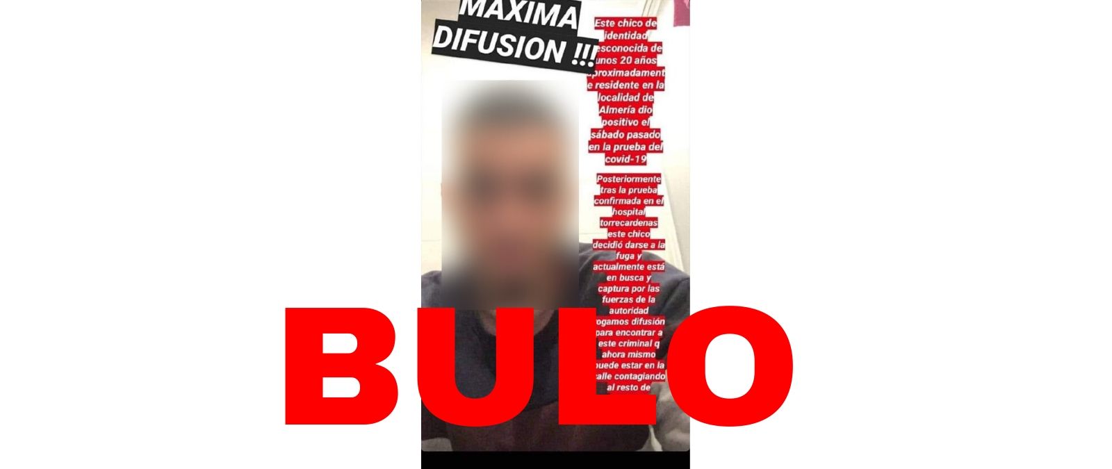 Se está difundiendo en redes sociales la foto de un chico que supuestamente estaría en busca y captura por haberse fugado del Hospital Torrecárdenas de Almería tras dar positivo en la prueba del nuevo coronavirus. Es un bulo. La Policía Nacional en Almería asegura que no hay nadie en busca y captura por ese motivo y desde la Delegación Territorial de Salud y Familias dicen que es un contenido falso.