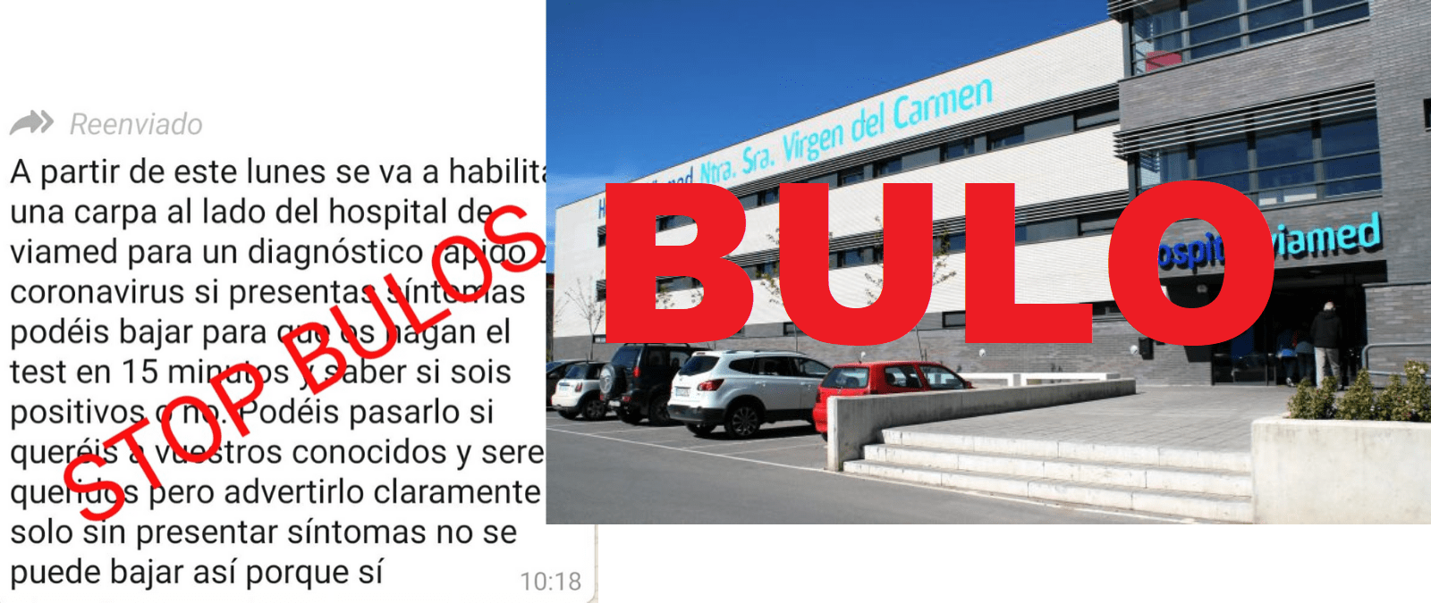 El propio ayuntamiento del municipio riojano de Calahorra, ha publicado en su cuenta de Twitter que se trata de un bulo y que no hay que ir al hospital para hacerse pruebas, sino que la Consejería de Sanidad de la Rioja llama a grupos de riesgo y personal de servicios esenciales para que se puedan realizar estas pruebas.