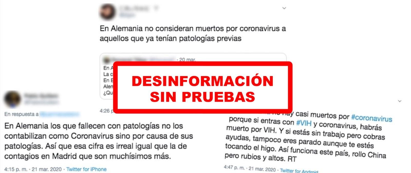 El pasado viernes 20 de marzo, el director del Centro de Alertas y Emergencias Sanitarias del Ministerio de Sanidad, Fernando Simón, dijo en rueda de prensa que no podía explicar por qué en Alemania, con alrededor de 15.000 casos confirmados de coronavirus entonces, había 44 muertos, mientras que España los contagiados eran alrededor de 18.000 y se habían confirmado más de 800 muertes. Por redes sociales, ha empezado a circular un rumor que afirma que en Alemania sólo se cuentan las muertes directas por coronavirus, no a aquellos pacientes que tienen patologías previas. "No hay casi muertos por coronavirus porque si entras con VIH y coronavirus, habrás muerto por VIH", se puede leer en uno de estos comentarios. Pero no hay pruebas de que esto sea cierto, os lo explicamos.