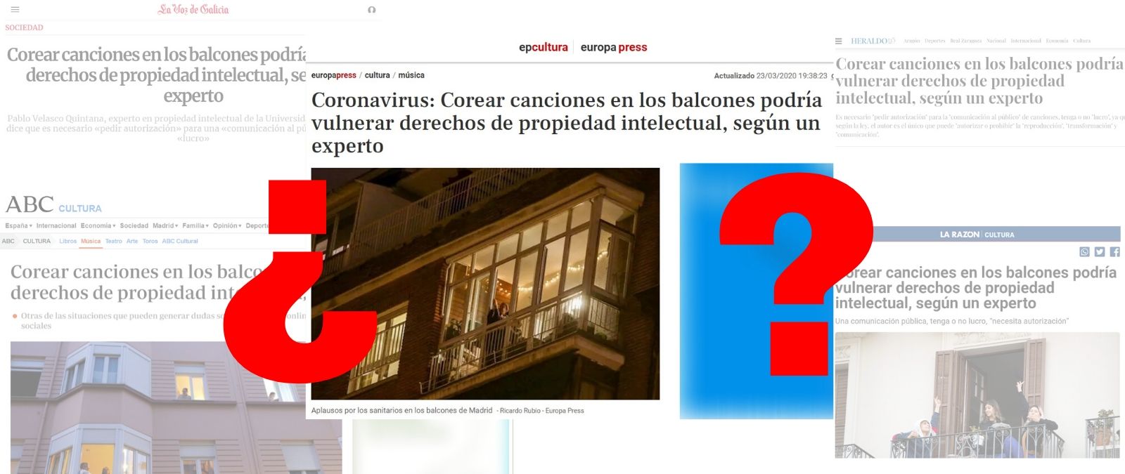 Según las declaraciones realizadas a Europa Press por Pablo Velasco Quintana, experto en propiedad intelectual de la Universidad CEU San Pablo, "'la ley no habla de beneficio económico' para que exista la vulneración de los derechos de propiedad intelectual". Por lo tanto, explica que aunque no haya lucro en corear canciones desde balcones y terrazas, quien lo haga debería pedir "una autorización" al autor para poder realizar esa "comunicación pública".