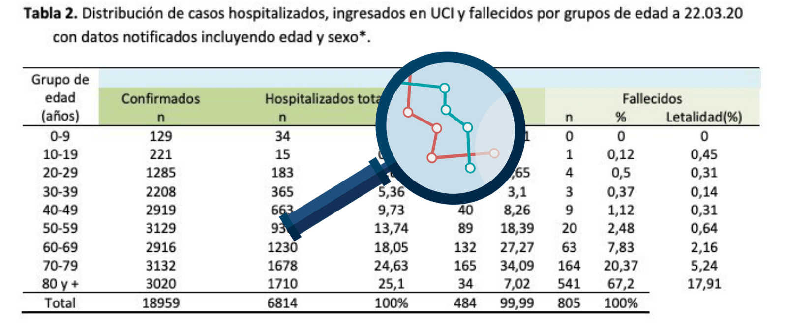 Nos estáis preguntando si la mortalidad del coronavirus en España es del 87% en el caso de los mayores de 70 años. No es así. Os lo explicamos.