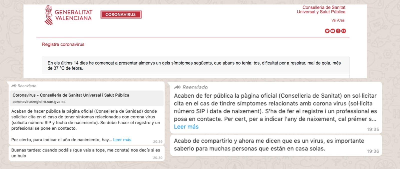 Nos habéis preguntado por una cadena que está circulando por WhatsApp, tanto en castellano como en catalán, que habla de una página web para pedir cita médica en la Comunidad Valenciana en caso de tener síntomas relacionados con el COVID-19. Concretamente, si es un bulo o algún tipo de virus. Os confirmamos que es oficial.