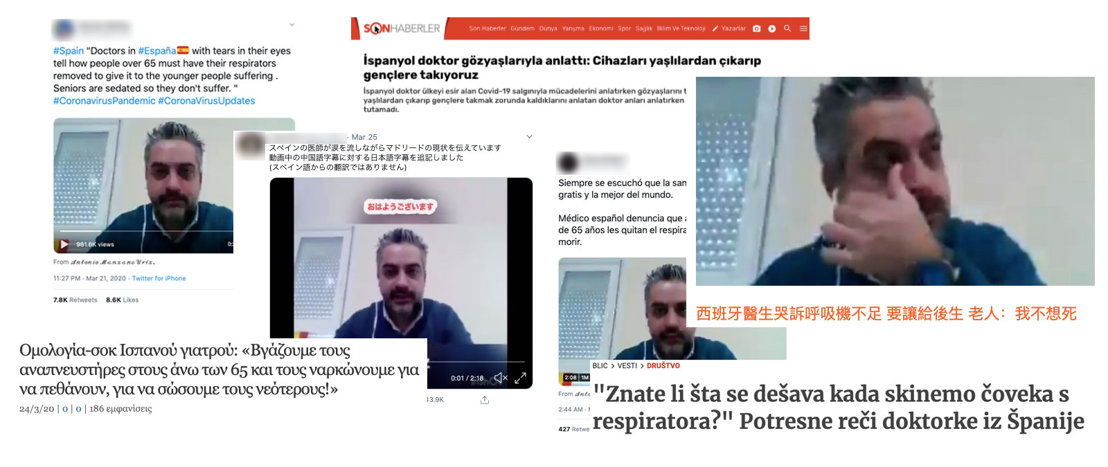 El hombre que aparece en las imágenes no se identifica en ningún momento como sanitario, pero aun así se han difundido en distintos idiomas como si se tratara de una voz autorizada que está viviendo la situación en primera persona, como ya os contamos en Maldita.es.