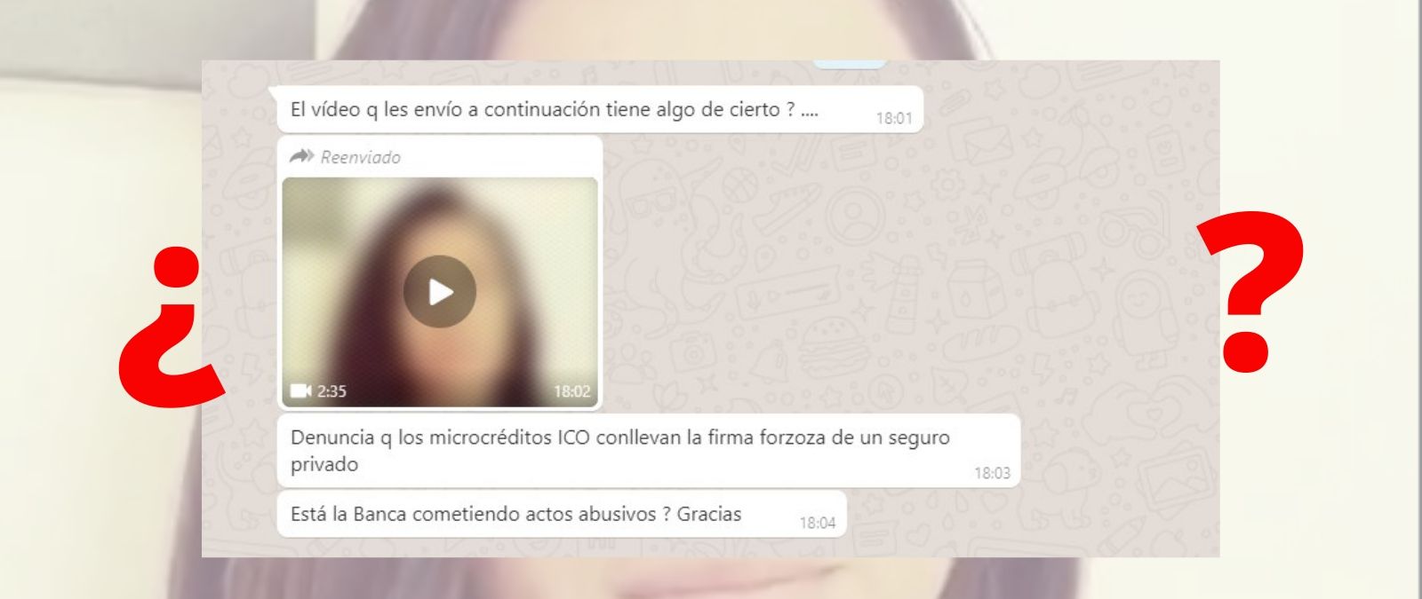 Se está difundiendo por WhatsApp un vídeo de una chica en el que dice que ha pedido un crédito ICO (para autónomos y empresas) a La Caixa de 5.000€ y que le obligan a pagar 1.200€ por un seguro de vida. El banco afirma que puede tratarse de un malentendido y que "no es obligatorio contratar un seguro de vida para contratar un crédito ICO" y el Ministerio de Asuntos Económicos y Transformación digital asegura que cuando el Estado avala está prohibida la exigencia de "contratación de cualquier producto". Os lo contamos: