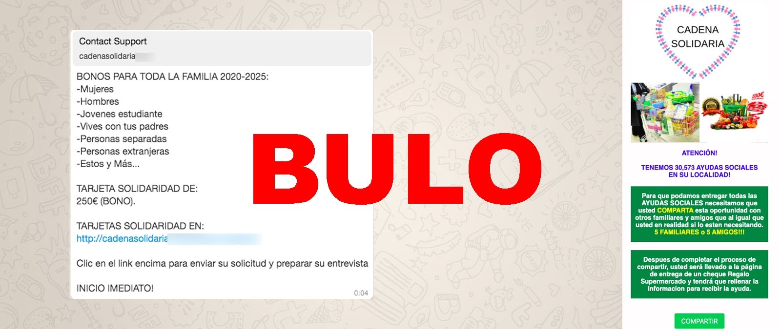 Por lo tanto, no es cierto que a través de esta página se estén dando esos bonos alimentarios, así que no facilites tus datos ni difundas la cadena por WhatsApp.