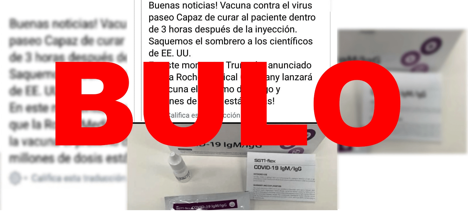 El producto que aparece en la foto de la cadena, ‘COVID-19 IgM/IgC’ no es una vacuna, ni está desarrollado por Roche Medical Company. Se trata de un test que detecta si el cuerpo está produciendo anticuerpos para luchar contra el coronavirus desarrollado por Sugentech, como explican en su web. En la propia descripción del producto explican que "como no hay medicinas ni vacunas, la mejor manera de combatir esta infección es el aislamiento. Mucha gente no tiene síntomas. Por eso, el diagnóstico rápido es muy importante. El SGTi-flex COVID-19 IgM/IgG permite ayudar a la comunidad a identificar la infección y aislar a las personas sin síntomas pero con sospecha de COVID-19".