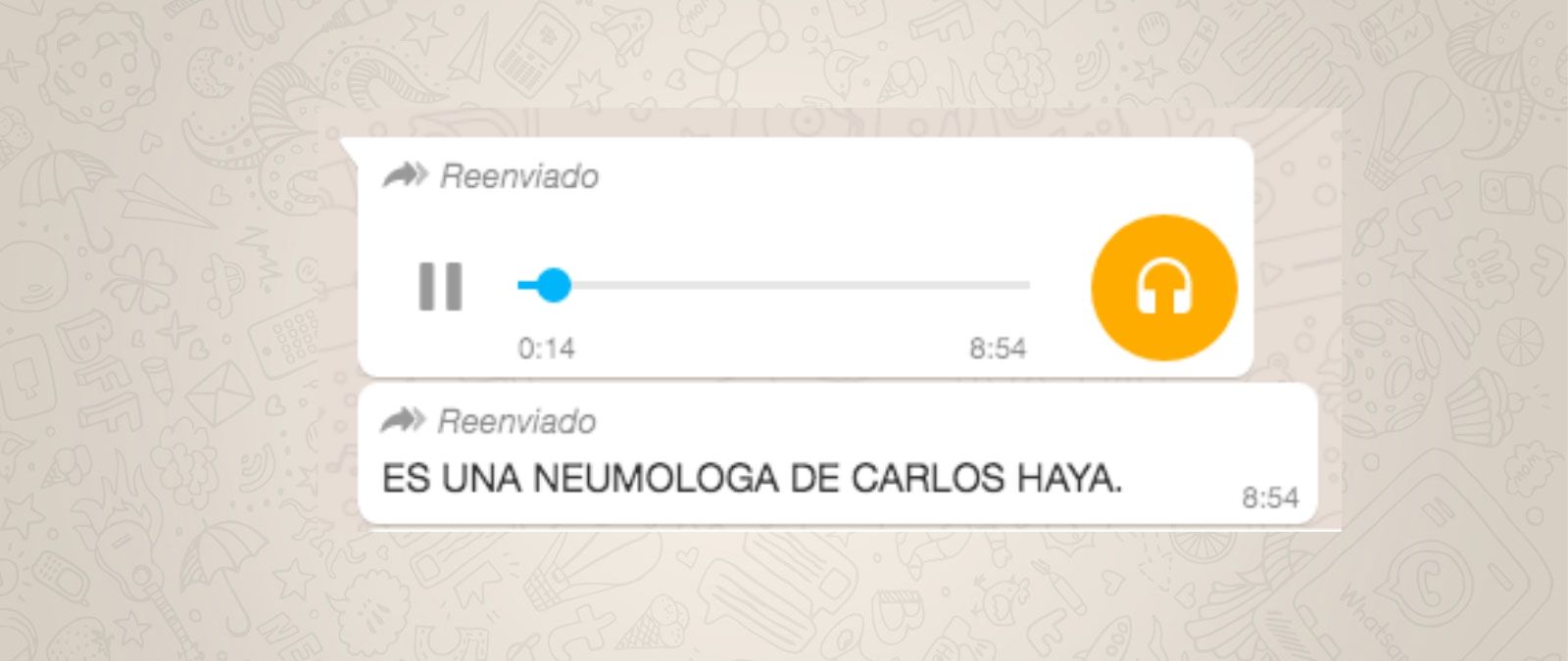 Nos habéis consultado mucho por un audio de 5 minutos y 30 segundos de duración que circula por WhatsApp de una neumóloga en el que habla de posibles tratamientos contra el coronavirus. Según la cadena con la que circula, es neumóloga en el Hospital Regional Universitario de Málaga (anteriormente llamado Hospital Carlos Haya).