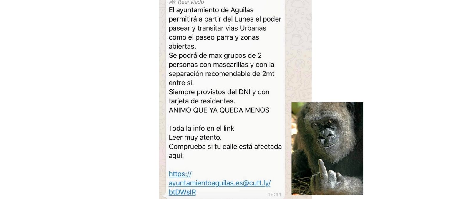 Nos habéis preguntado por un mensaje que asegura que "el Ayuntamiento de las Águilas permitirá pasear por vías urbanas a partir del lunes" coincidiendo con el estado de alarma establecido por el coronavirus.