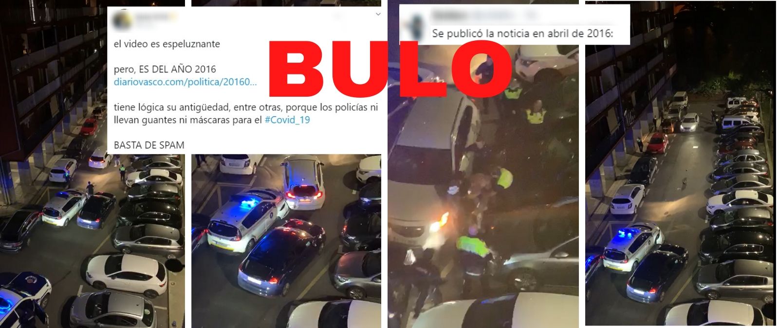 Nos habéis preguntado si es cierto que el vídeo en el que se ve a un coche blanco en medio de una calle de Errenteria (Guipuzkoa) embestir a varios coches policiales mientras da marcha atrás es de 2016 o si coincide con la crisis del coronavirus. Además, usuarios en Twitter han asegurado que el suceso es de 2016 en base a una noticia ubicada en la misma localidad. Es un bulo. El suceso que aparece en este vídeo no ha sido grabado en 2016, ocurrió la noche del 8 de abril de 2020, tal y como confirman a Maldita.es la Policia Local de Errenteria y la Ertzaintza.