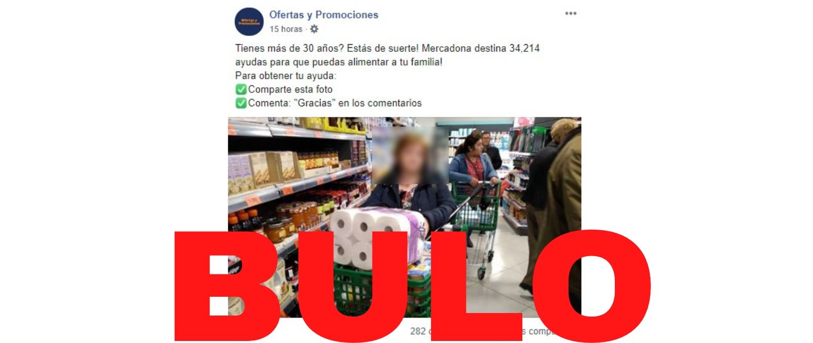 Se trata de un falso sorteo que pide que, para obtener la ayuda, compartas la imagen y comentes "gracias" en la publicación, pero no hay rastro del supuesto sorteo o promoción. Además, desde Mercadona indican a Maldita.es que el contenido es "falso".
