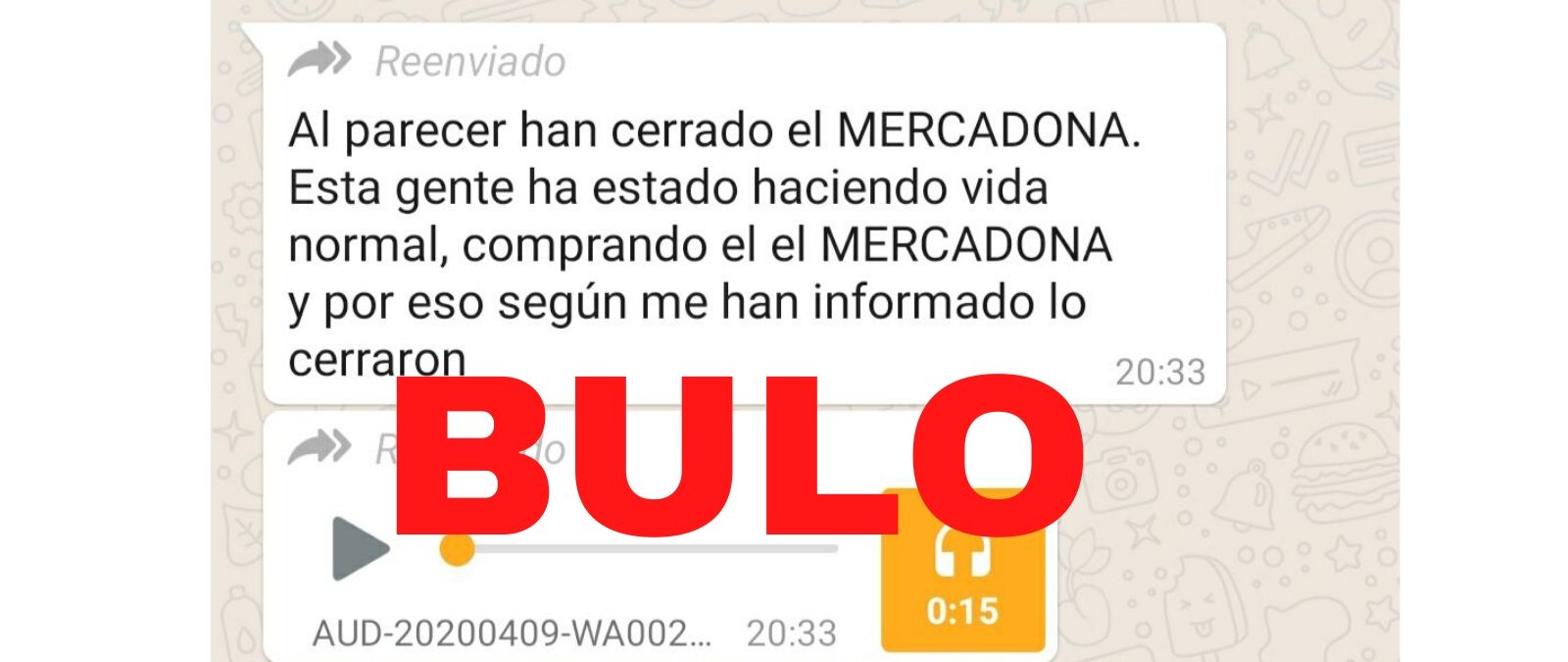 Coincidiendo con el estado de alarma por la crisis del coronavirus circula por redes un mensaje asegurando que "Al parecer han cerrado el Mercadona. Esta gente ha estado haciendo vida normal, comprando el el Mercadona y por eso según me han informado lo cerraron" junto a un audio indicando que el Mercadona de La Vera, ubicado en Puerto de La Cruz (Tenerife), lo han cerrado. Es un bulo. No han cerrado ni precintado ningún supermercado de esta cadena en La Vera, Puerto de la Cruz (Tenerife), a fecha de 9 de abril de 2020.