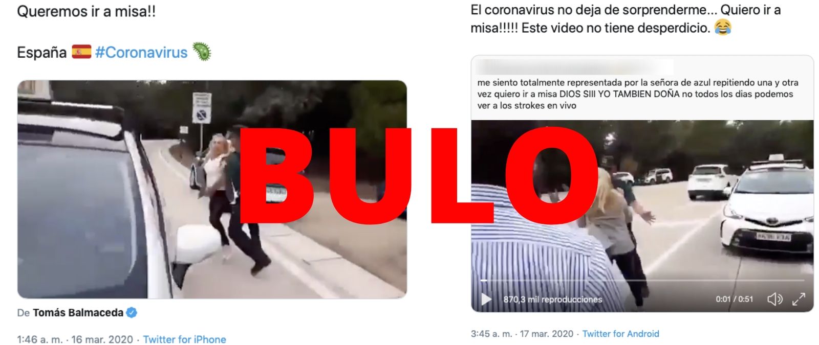 Se está difundiendo un vídeo por redes sociales de unas personas gritando y pidiendo a agentes de la Guardia Civil, que les bloquean el paso, que les dejen ir a misa. Los vídeos van acompañados de mensajes que afirman que las imágenes son actuales y tienen que ver con el coronavirus. Es un bulo: este vídeo fue grabado en octubre de 2019, cuando se cerraron las puertas del Valle de los Caídos para proceder a la exhumación de Franco.