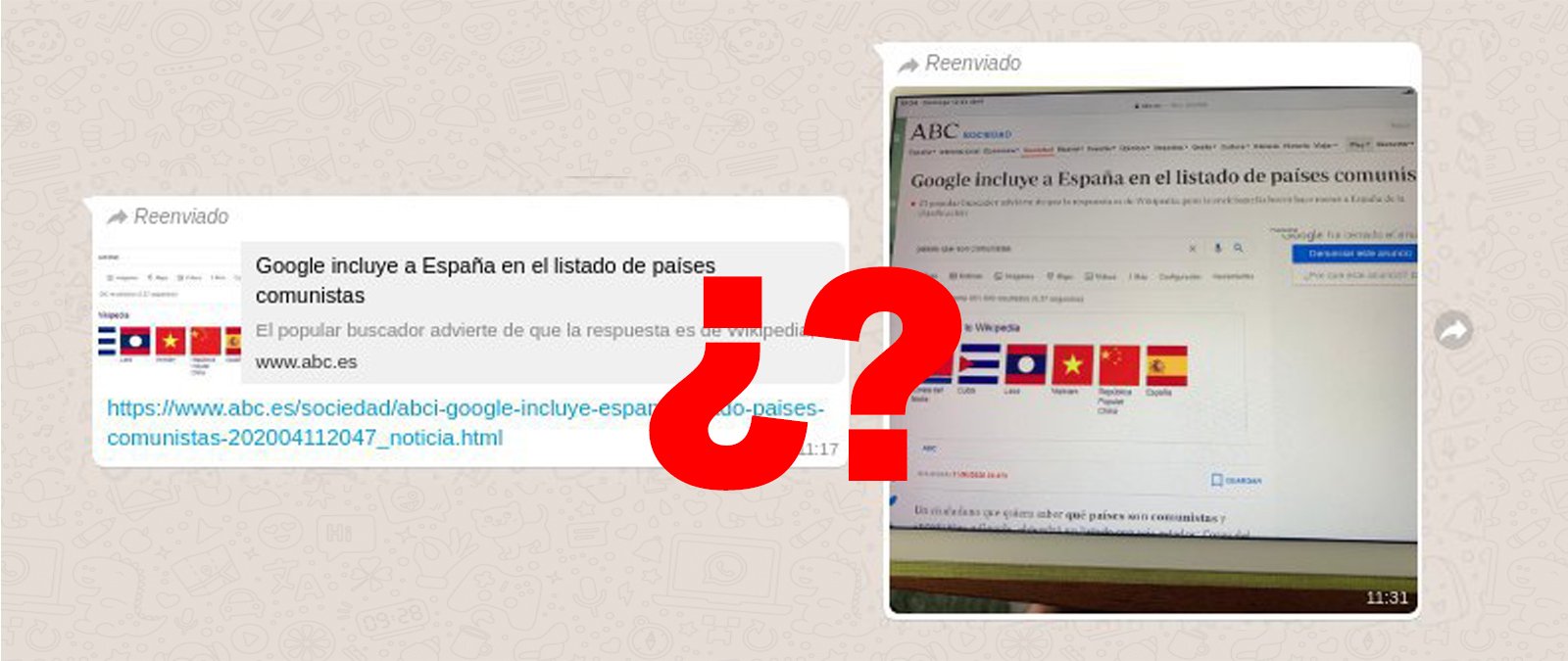 Nos habéis preguntado por una noticia de ABC de este 11 de abril, cuyo titular afirma: "Google incluye a España en el listado de países comunistas". En el subtítulo, se aclara que la respuesta que da el buscador viene de la Wikipedia. Os explicamos lo que sabemos sobre este tema.