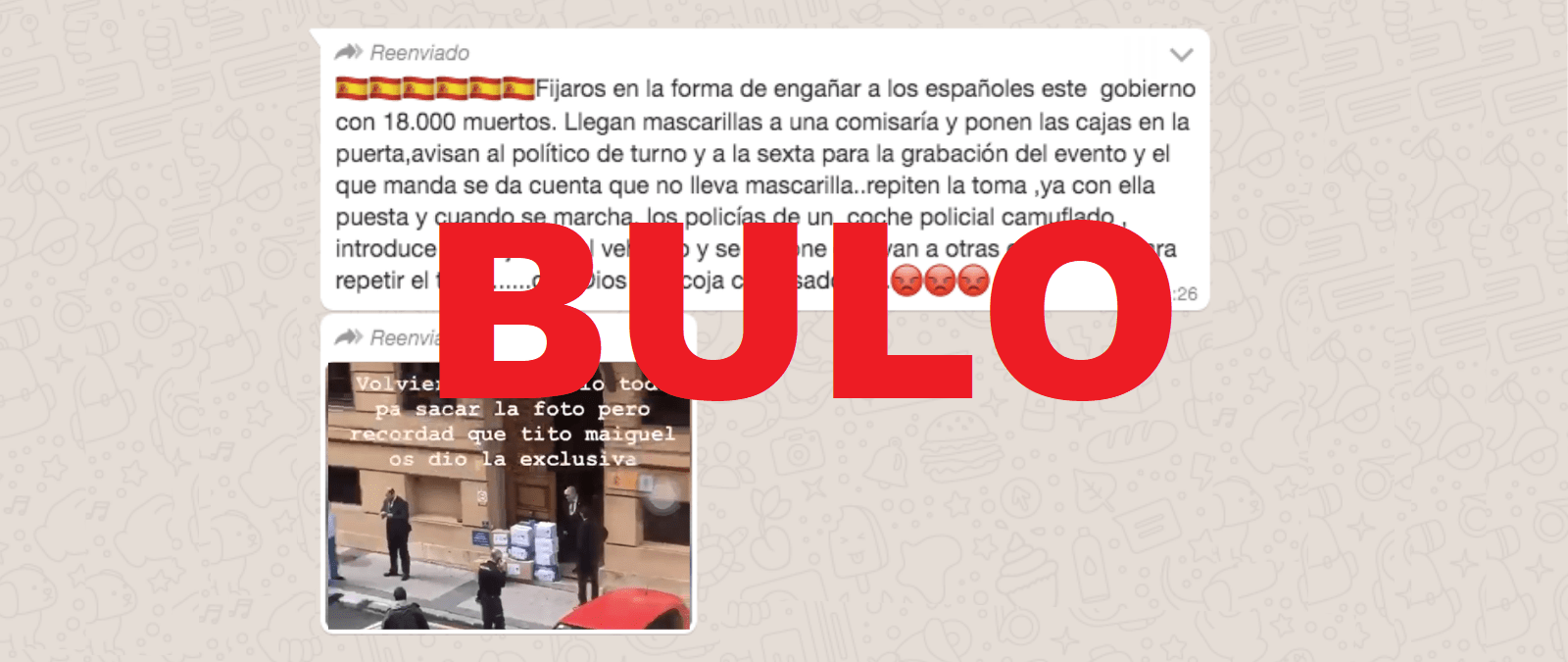 Nos habéis preguntado por un vídeo que circula en la que se ve a varias personas con traje acercarse a las puertas de una comisaria y tomarse fotos con las mascarillas coincidiendo con la crisis sanitaria por coronavirus. Este vídeo se mueve con mensajes de "llegan mascarillas a una comisaría y ponen las cajas en la puerta, avisan al político de turno y a la sexta para la grabación del evento" y añaden que repiten la escena con la mascarilla puesta y luego se llevan el material sanitario a otro sitio para hacer lo mismo . Es un bulo. Las personas que posan ante las cámaras no son políticos sino que son de una cofradía llamada La Hermandad de los Estudiantes de Oviedo, Asturias.