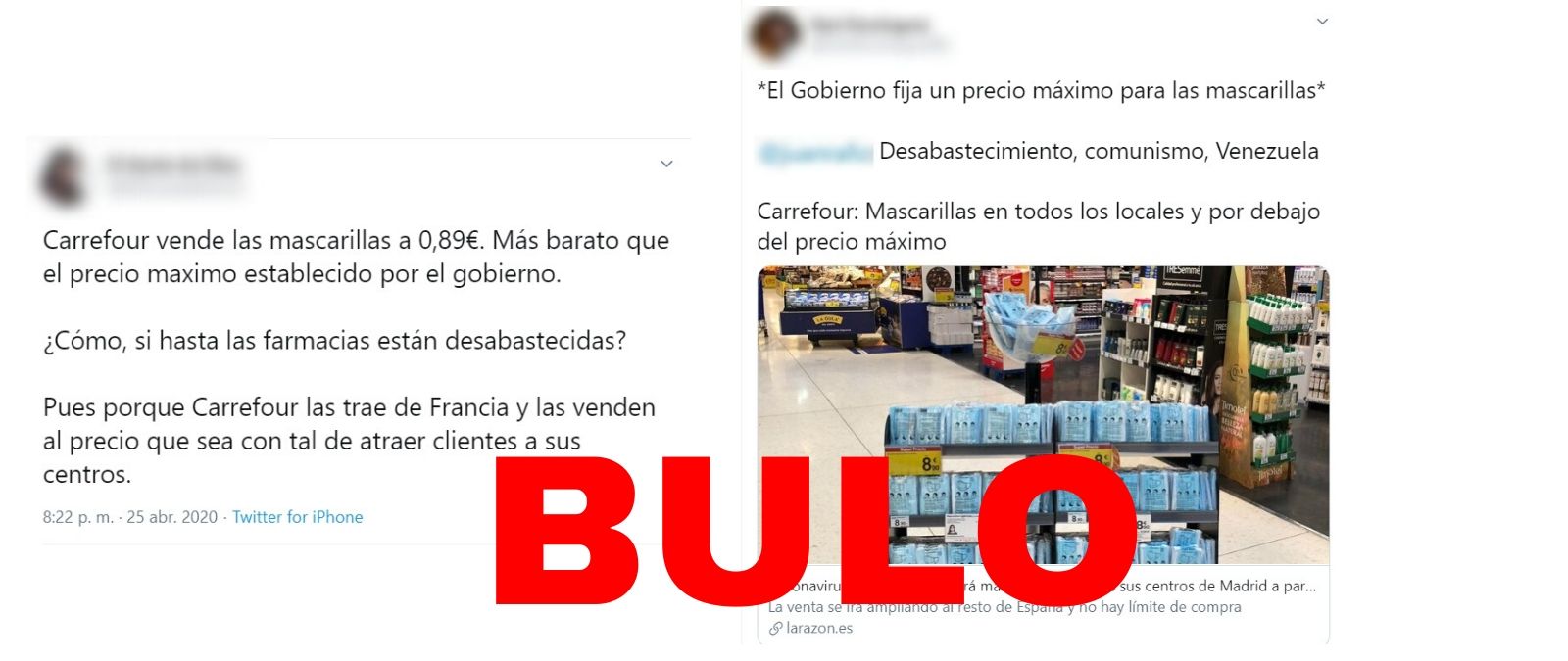 Tras la publicación de Carrefour, muchos usuarios en redes sociales han compartido esta iniciativa como si el supermercado estuviese vendiendo este producto por debajo del precio máximo establecido por el Gobierno. Sin embargo, como hemos dicho, las mascarillas que vende Carrefour son higiénicas y no quirúrgicas, que son las que el Gobierno ha regulado.