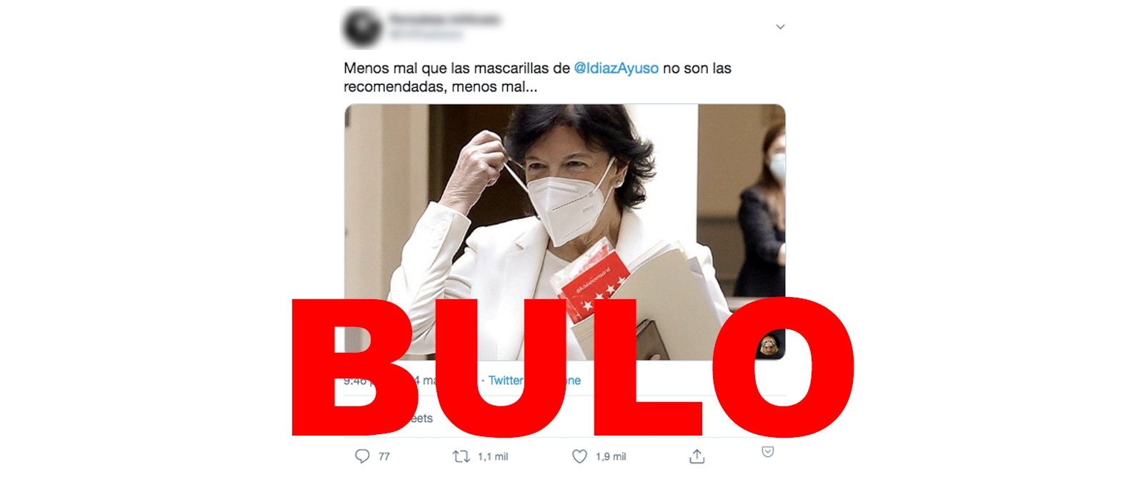 No, esta foto de la ministra Isabel Celaá con una de las mascarillas gratuitas de la Comunidad de Madrid no es real: es un montaje