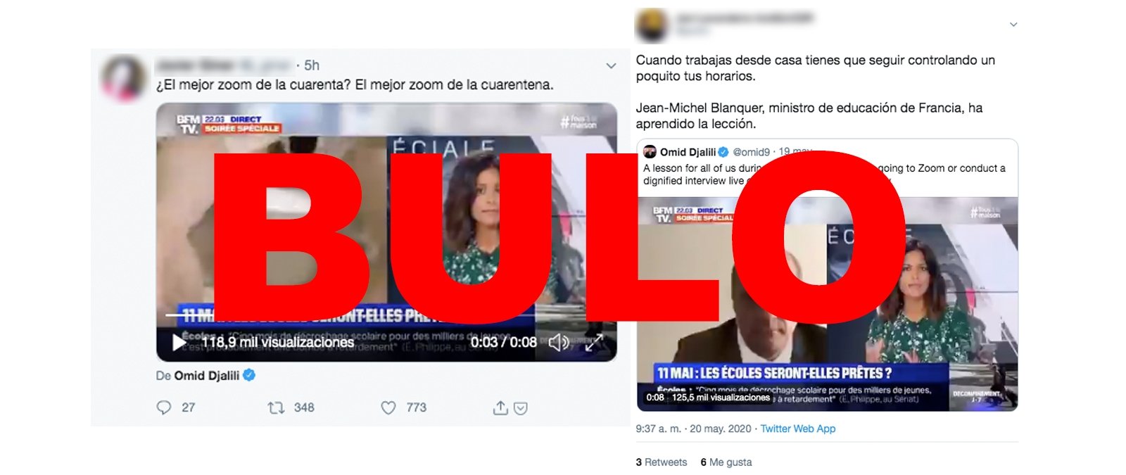 Los compañeros de Les Décodeurs de Le Monde, también miembros de la International Fact-Checking Network (IFCN), han verificado este vídeo viral y se trata de una secuencia manipulada a partir de una entrevista que concedió el ministro sobre el desconfinamiento de Francia por el coronavirus y la apertura de escuelas a la cadena de televisión francesa BFM-TV (puedes verla aquí, partir del min 1:02:05 aprox.), el pasado lunes 4 de mayo.