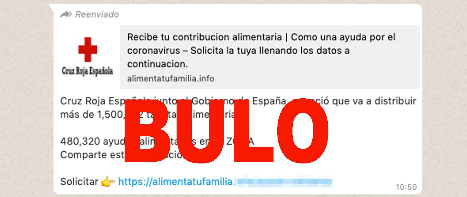 Nos habéis preguntado si es real una cadena de WhatsApp que afirma que Cruz Roja está regalando tarjetas alimentarias por la crisis del coronavirus y que te lleva a una web donde supuestamente puedes recibirla. Es un bulo: esta web no tiene nada que ver con Cruz Roja y se están intentando quedar con tus datos.