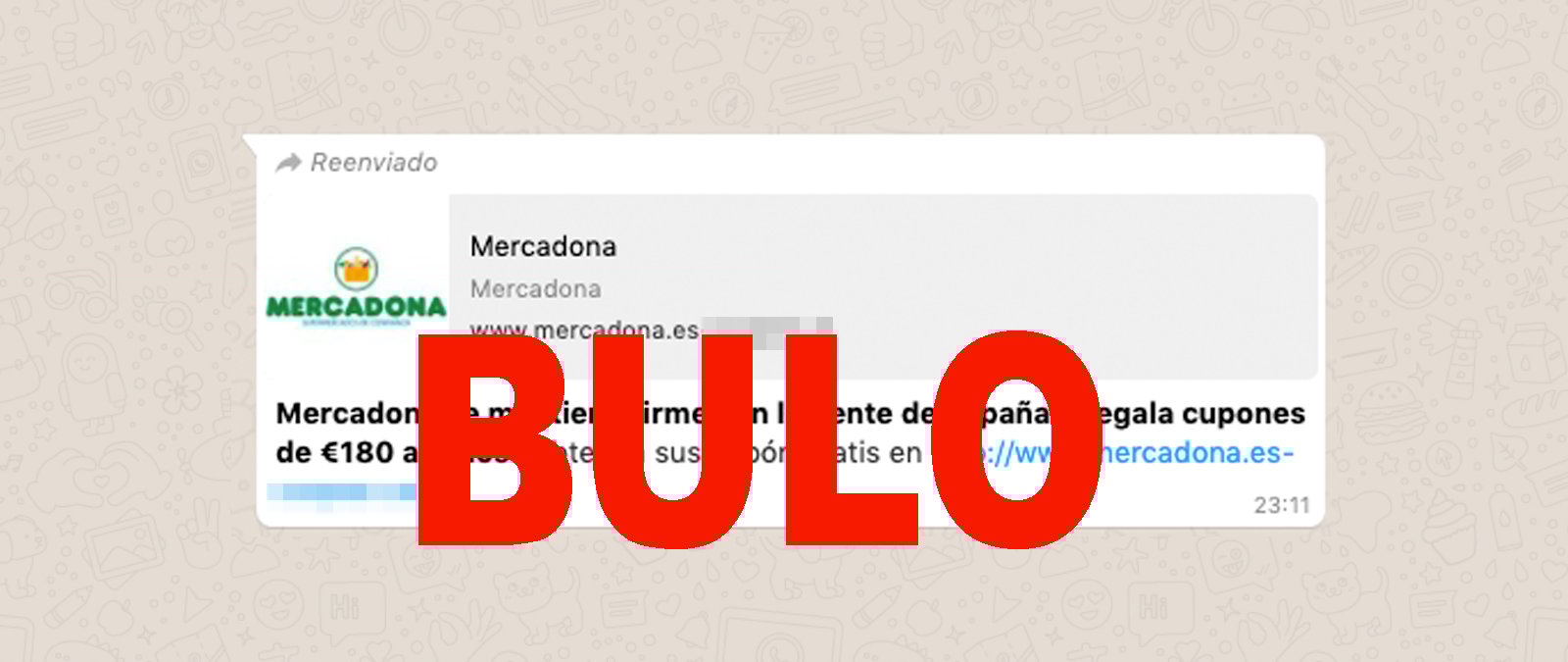 Nos estáis preguntando mucho a través de nuestro servicio de WhatsApp (655 19 85 38) si es cierto que Mercadona está regalando cupones de 180€ a todos, como afirma una cadena que circula por esta red social. Es un bulo: la web a la que redirige la cadena no es de Mercadona y buscan quedarse con tus datos, técnica conocida como phishing.