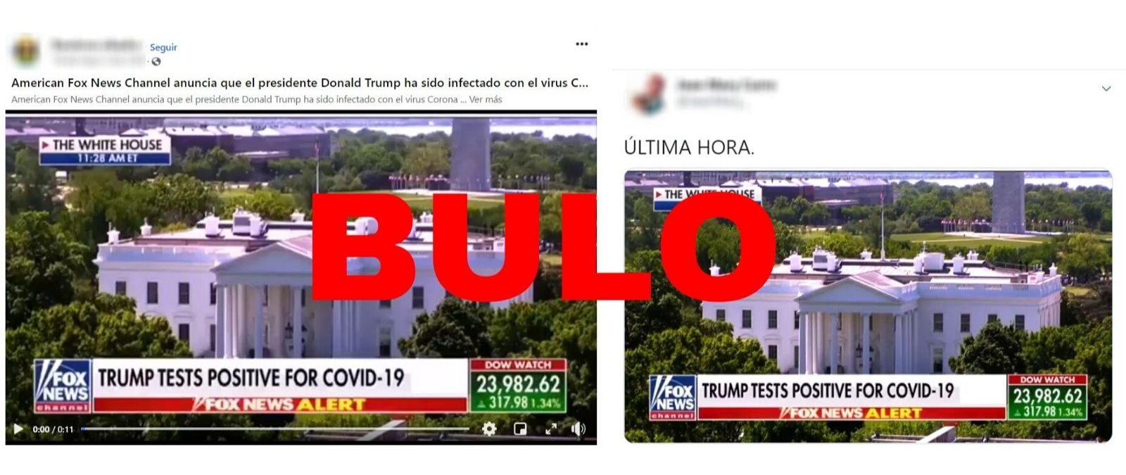 El vídeo que se comparte es una manipulación a partir de de una emisión del canal de noticias Fox News del 7 de mayo. Sin embargo, el contenido original informa sobre el resultado positivo en el test por coronavirus de un ayudante personal de Trump, mientras que afirma que tanto el presidente como el vicepresidente han dado negativo. Otros medios como CNN también informaron sobre el positivo del ayudante del presidente estadounidense.