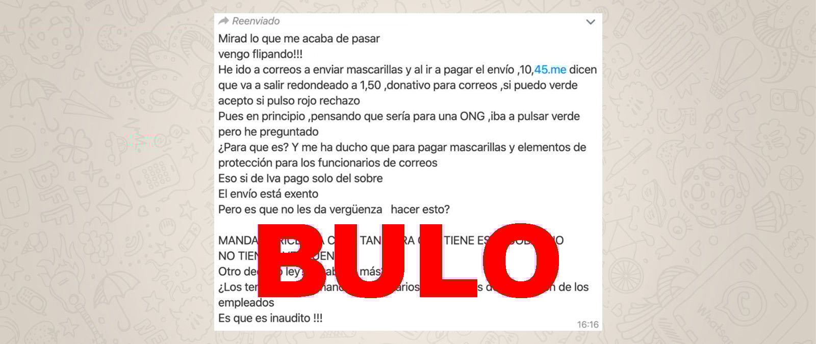 Circula por WhatsApp una cadena en la que se dice que Correos está "redondeando" los precios de sus servicios y que ese dinero se destina para "pagar mascarillas y elementos de protección para los funcionarios de Correos". Es un bulo: se trata de una campaña que han lanzado con el objetivo de recaudar fondos para la investigación contra la COVID-19.