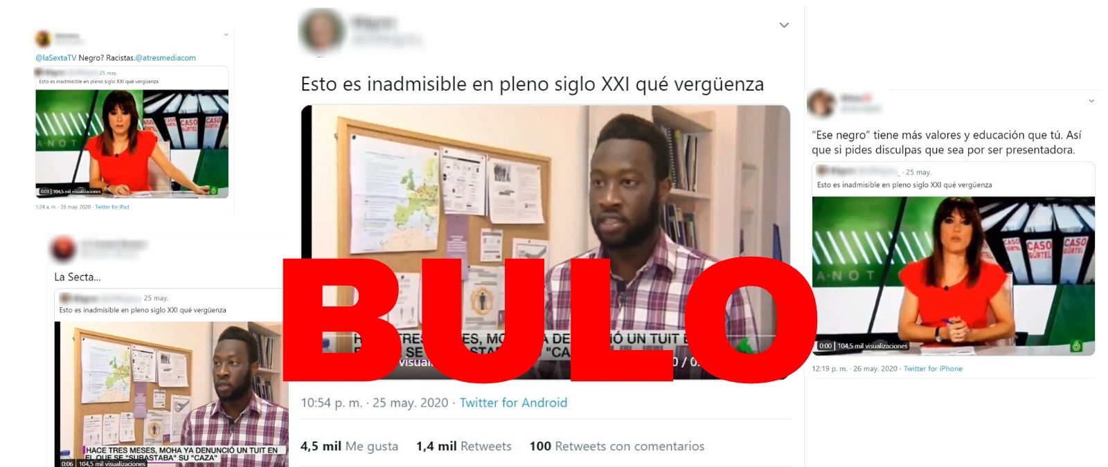Está circulando en redes sociales un vídeo de la periodista de La Sexta Helena Resano en el que dice "pedimos disculpas por ese negro que nos ha entrado en ese vídeo en la parte final de esa información", después de cortar las declaraciones del periodista y activista contra el racismo Moha Gerehou. Es un bulo. El vídeo es un montaje en el que se han usado imágenes de años diferentes, aunque se está compartiendo como si fuese real.
